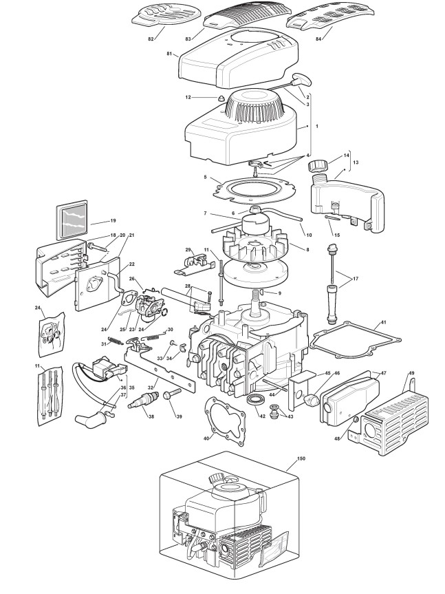 Hier finden Sie alle Ersatzteile von Castelgarden Benzinrasenmäher ab 2008 R 484 TR - B (ID 298506043/Y) aus der Zeichnung Motor - ST. M150 (2):