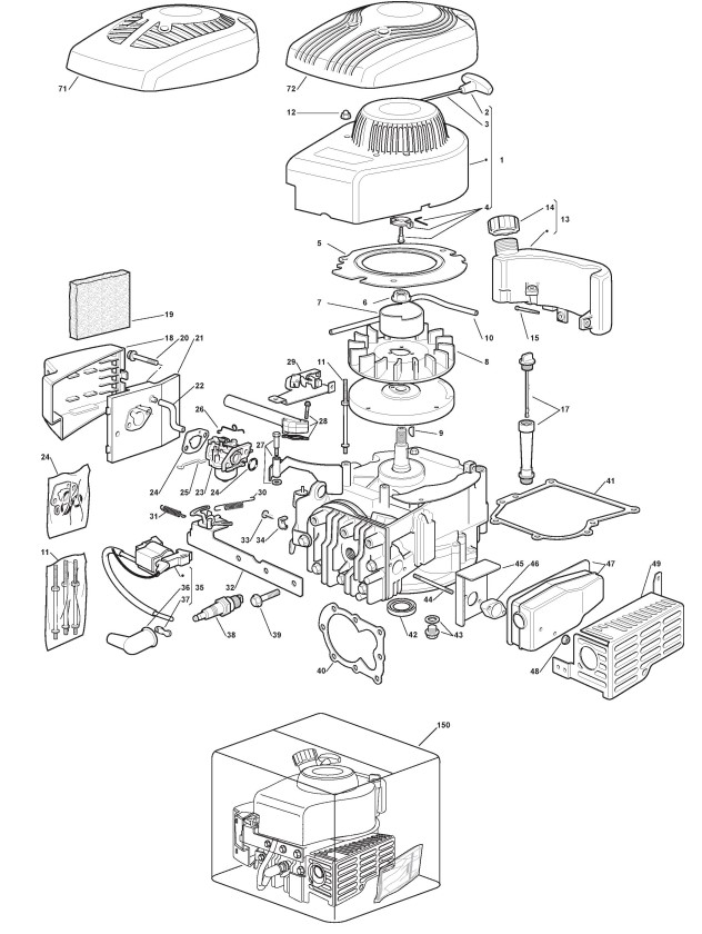 Hier finden Sie alle Ersatzteile von Castelgarden Benzinrasenmäher ab 2008 R 534 TR (ID 298706046/HLW) aus der Zeichnung Motor - ST. SV150 (1):