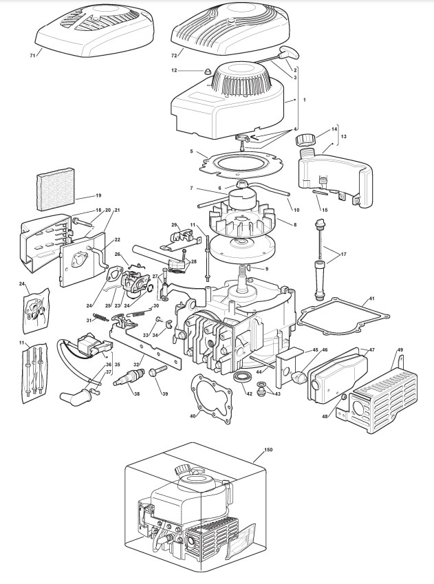 Hier finden Sie alle Ersatzteile von Castelgarden Benzinrasenmäher ab 2008 XS 50 RGS (ID 291486848/XR) aus der Zeichnung Motor - ST. SV150 (1):