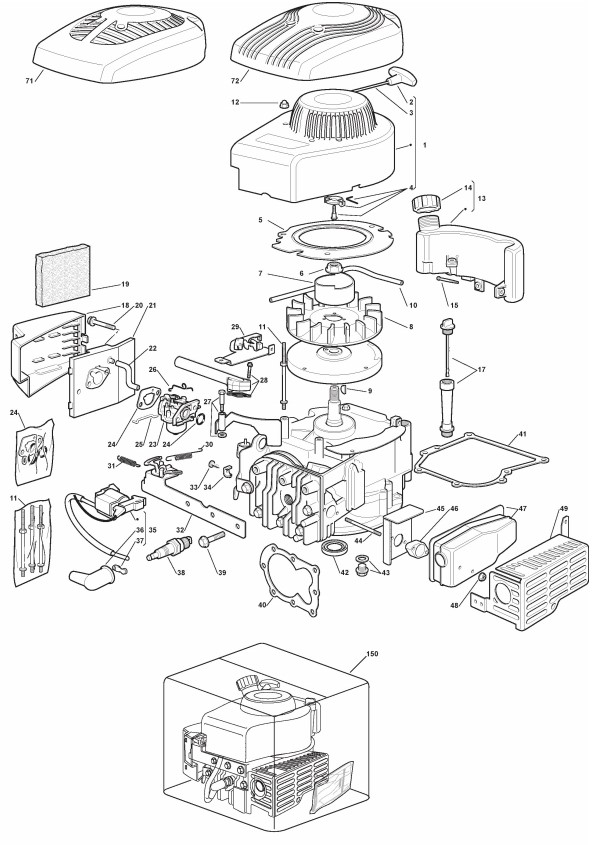 Hier finden Sie alle Ersatzteile von Castelgarden Benzinrasenmäher ab 2008 NG 464 (ID 293516145/PAP) aus der Zeichnung Motor - ST. SV150 (2):