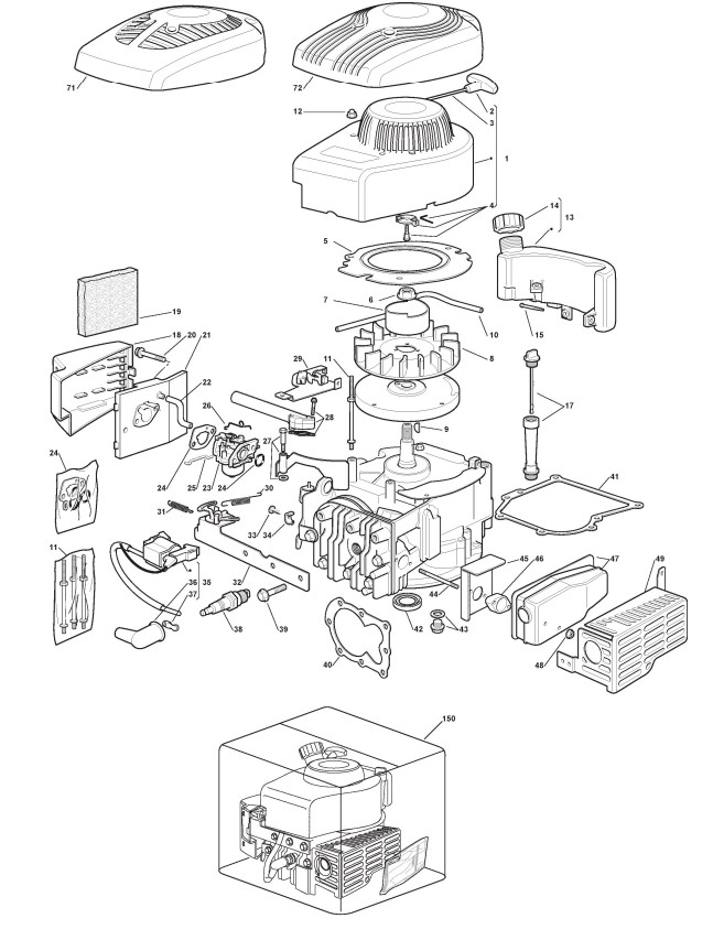 Hier finden Sie alle Ersatzteile von Castelgarden Benzinrasenmäher ab 2008 R 484 TR - G (ID 298506041/LM) aus der Zeichnung Motor - ST. SV150 (2):