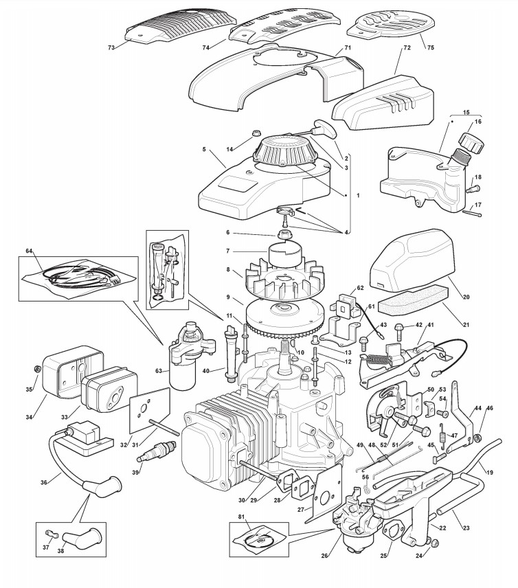 Hier finden Sie alle Ersatzteile von Castelgarden Benzinrasenmäher ab 2008 RA 534 TR/E - G (ID 292166543/08) aus der Zeichnung Motor - ST. SV200ES (2):