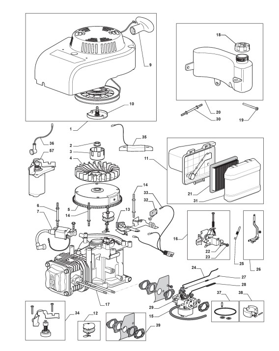 Zeichnungen von Stiga Motoren SA55 mit Geräte Nr. 118550411/0_110001SA55 ab Baujahr 2013