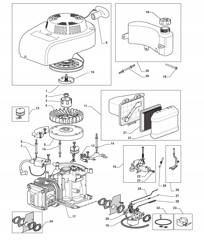 Hier finden Sie alle Ersatzteile von Castelgarden Benzinrasenmäher ab 2008 TDL 534 W TR (ID 294537046/HLW) aus der Zeichnung Motor - ST. WBE0701 (1):