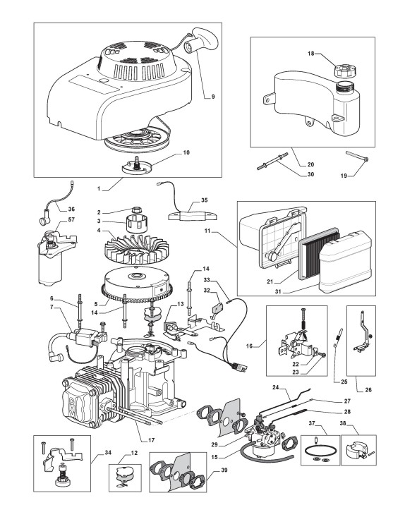 Zeichnungen von Stiga Motoren RM55 mit Geräte Nr. 118550411/0_080001RM55 ab Baujahr 2009