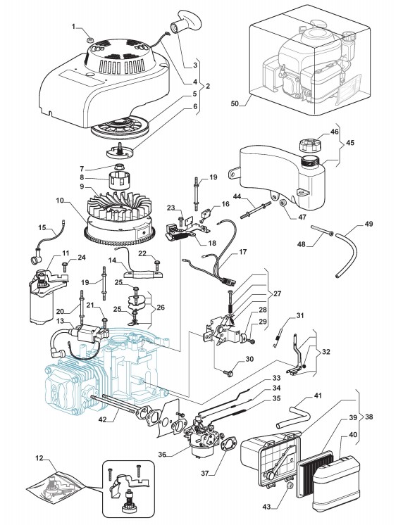 Hier finden Sie alle Ersatzteile von Stiga Benzin-Rasenmäher ab 2013 Multiclip Euro 50 SE (Geräte Nr 291502541/S12) aus dem Zeichnungsblatt Motor - ST. WBE0701ES (2):