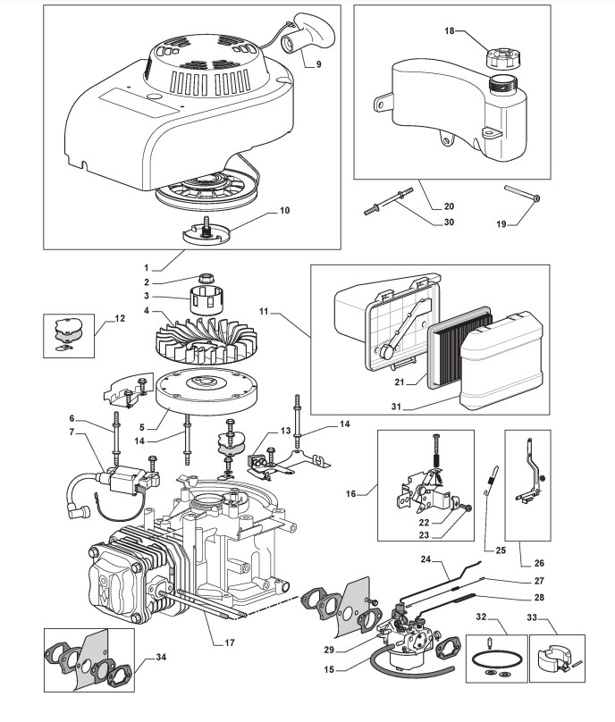 Hier finden Sie alle Ersatzteile von Castelgarden Benzinrasenmäher ab 2009 XAP 55 MGS (ID 292148043/09) aus der Zeichnung Motor - ST. WBE0704 (1):