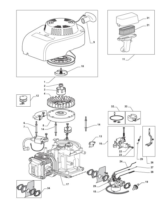 Zeichnungen von Stiga Motoren RM70 mit Geräte Nr. 118550430/0_100001RM70 ab Baujahr 2011