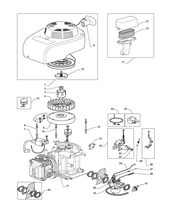 Zeichnungen von Stiga Motoren RM70 mit Geräte Nr. 118550430/0_110001RM70 ab Baujahr 2013