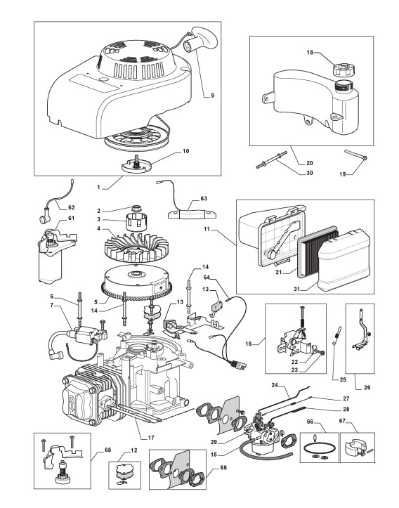 Zeichnungen von Stiga Motoren SA65 mit Geräte Nr. 118550431/0_080001SA65 ab Baujahr 2009