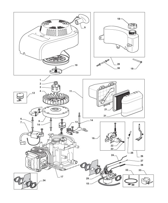Zeichnungen von Stiga Motoren SA65 mit Geräte Nr. 118550318/0_110001SA65 ab Baujahr 2012