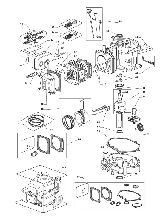 Zeichnungen von Stiga Motoren M65 mit Geräte Nr. 118550433/0_080001M65 ab Baujahr 2009