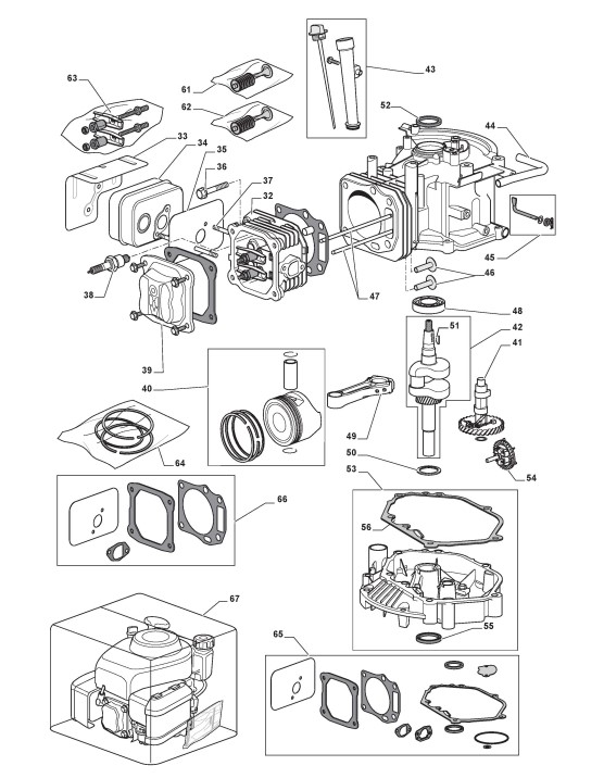 Zeichnungen von Stiga Motoren M65 mit Geräte Nr. 118550433/0_110001M65 ab Baujahr 2015