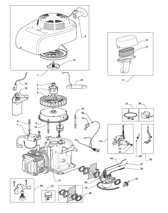 Zeichnungen von Stiga Motoren M65 mit Geräte Nr. 118550433/0_110001M65 ab Baujahr 2012