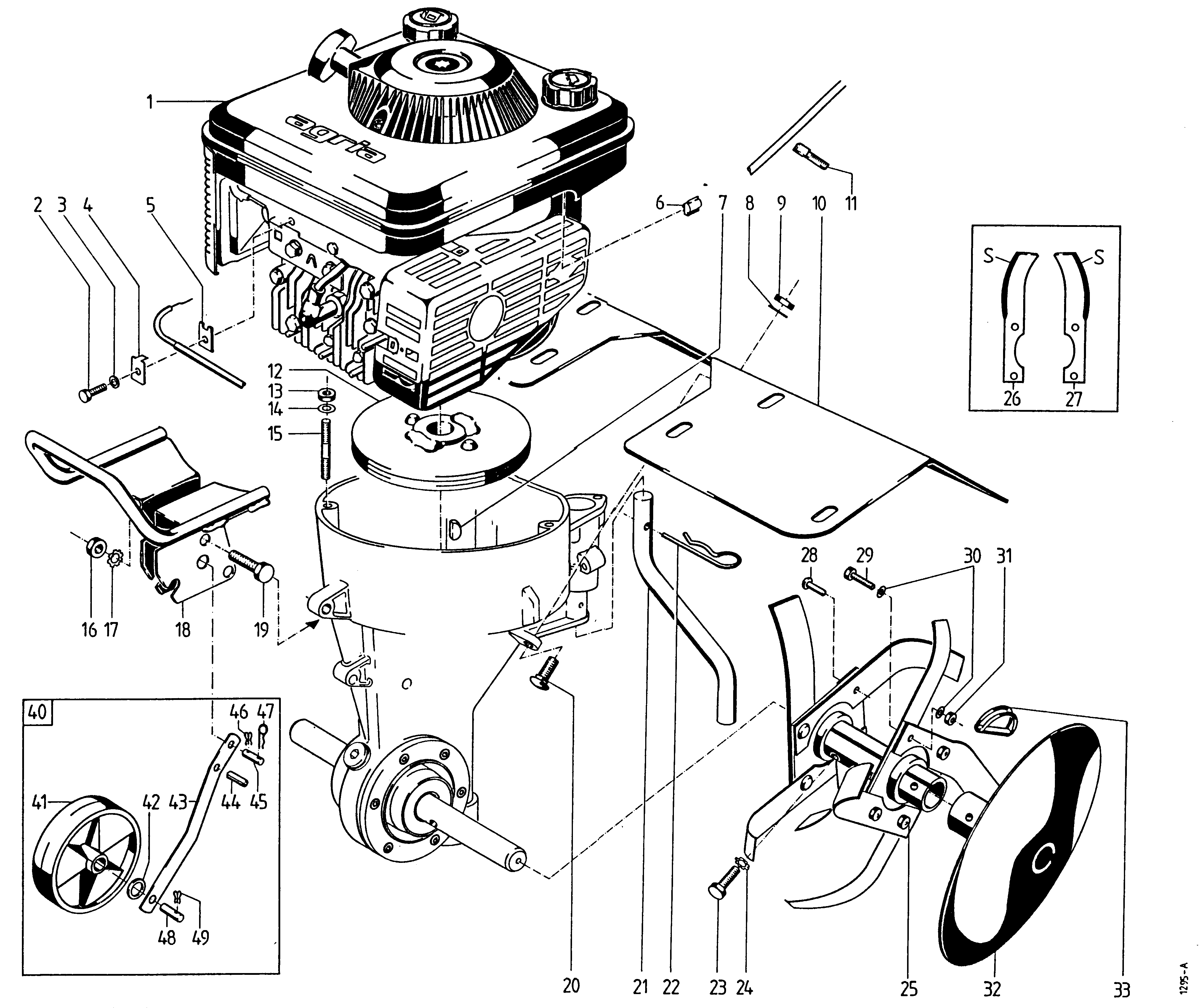 Ersatzteile für Agria # Motorhacken # agria 1000 # Art-Nr 1000431 | agria 1000-4 45CM 4T # Motor Anbauteile # Motor, Schutzdach, Hackwerkzeuge, Frontrad