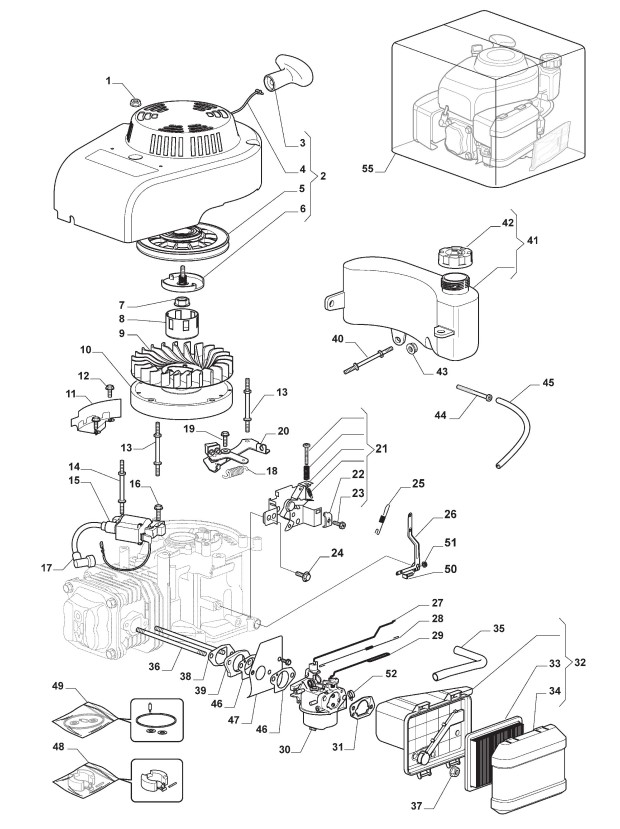 Hier finden Sie alle Ersatzteile von Castelgarden Benzinrasenmäher ab 2016 ES 534 TR - G (ID 299265343/MER) aus der Zeichnung Motor - Vergaser, Tank (2):