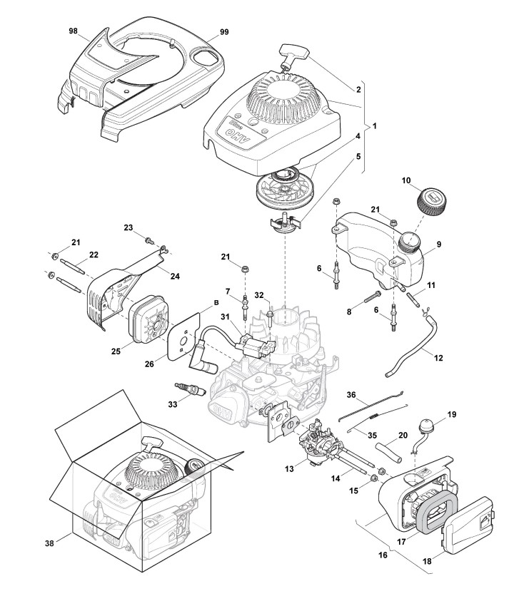 Hier finden Sie alle Ersatzteile von Castelgarden Benzinrasenmäher ab 2016 ES 464 - G (ID 299164643/12) aus der Zeichnung Motor - Vergaser, Tank: