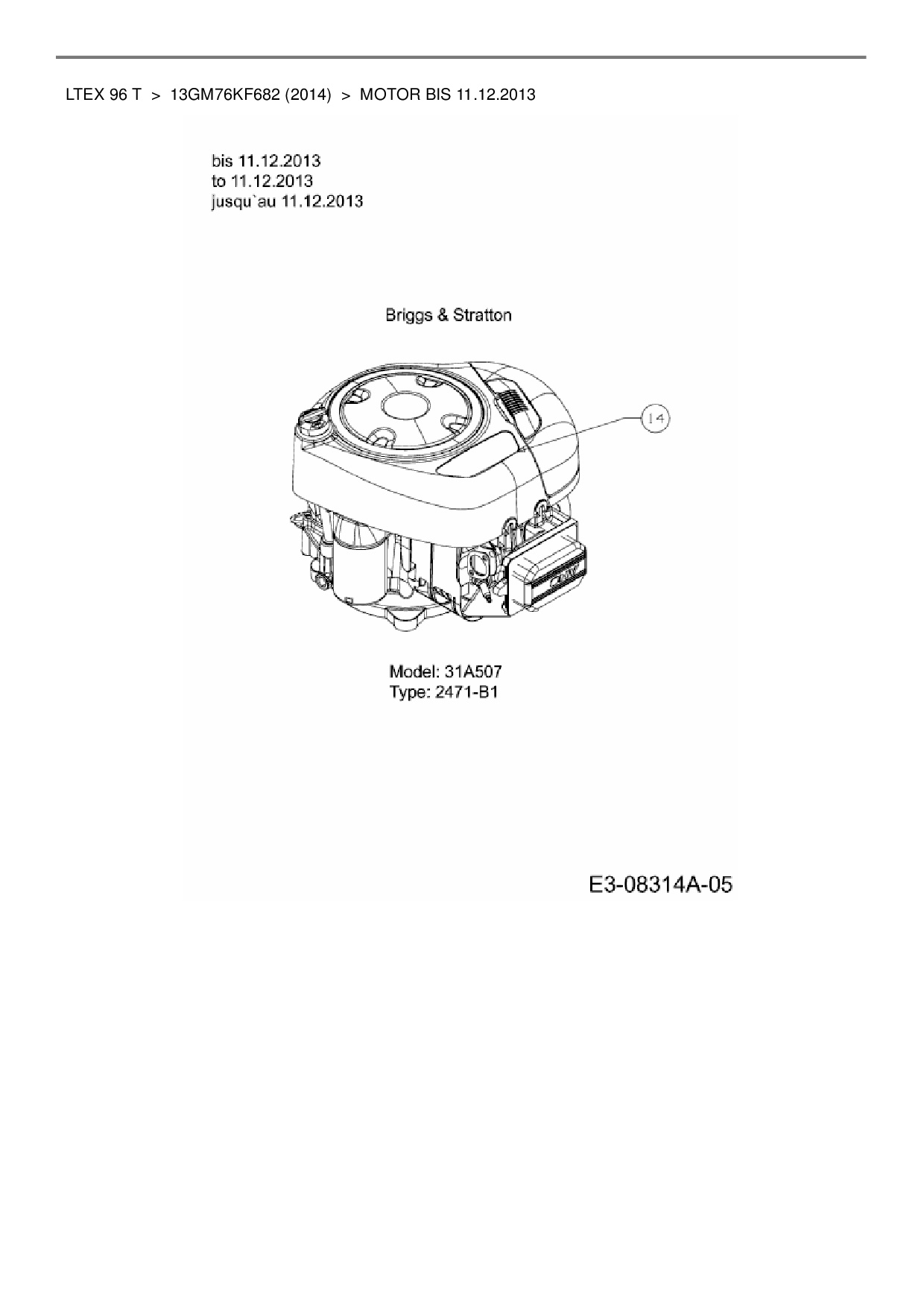 Ersatzteile für Rasentraktor MTD LTEX 96 T aus der Zeichnung Motor bis 11.12.2013: