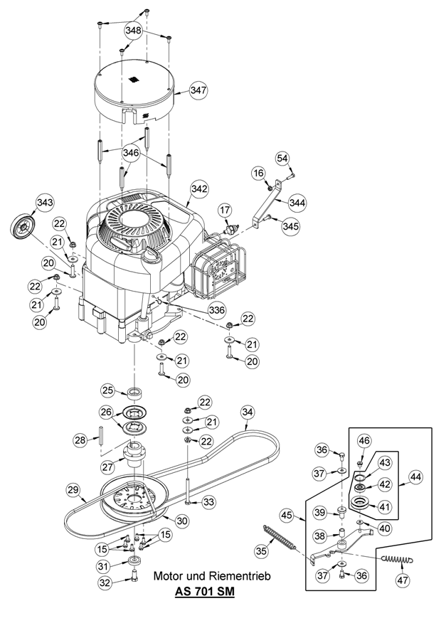 Hier finden Sie alle Ersatzteile von AS-Motor Schlegelmäher AS 701 SM ab FNr. 026816040001 aus dem Zeichnungsblatt Motor und Riementrieb: