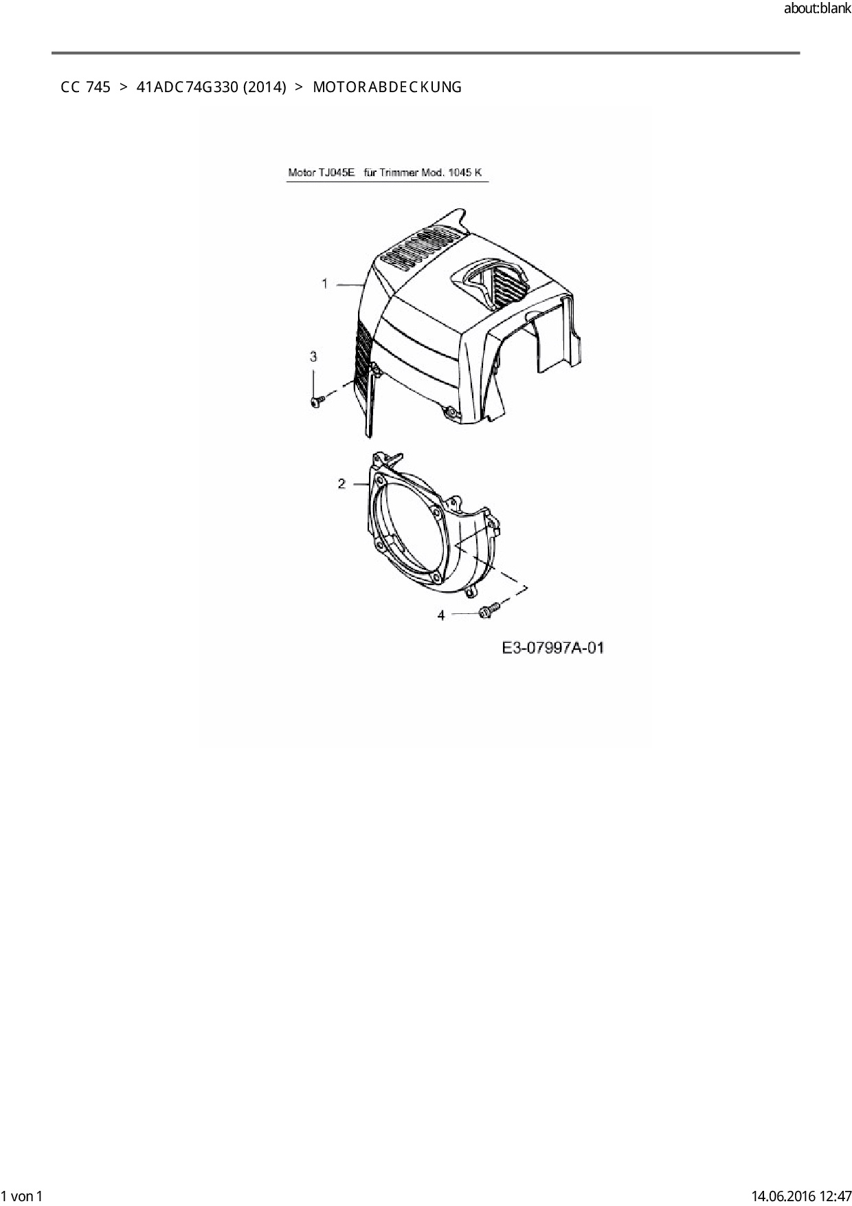 Ersatzteile für Motorsense Cub Cadet CC 745 aus der Zeichnung Motorabdeckung: