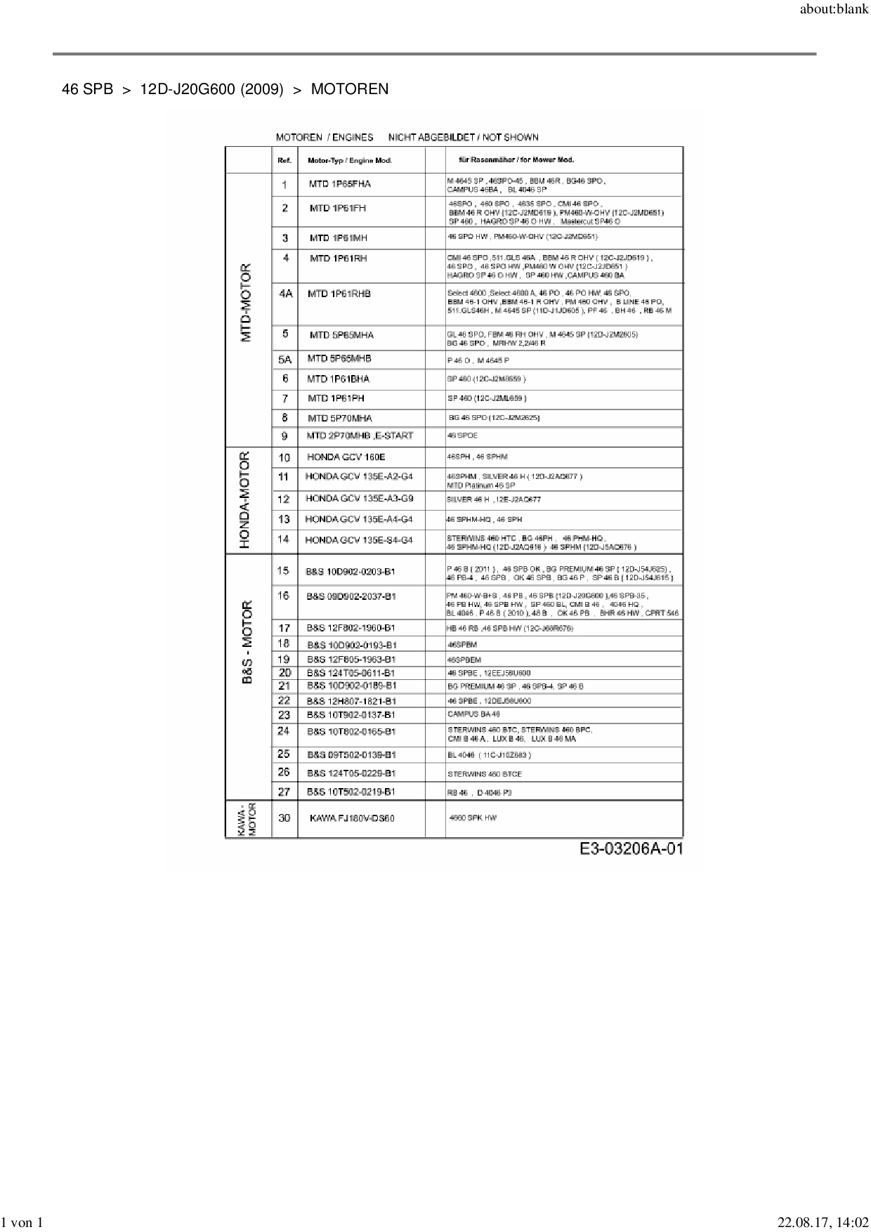 Ersatzteile für Motormäher mit Antrieb MTD 46 SPB aus der Zeichnung Motoren: