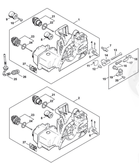 Hier finden Sie alle Ersatzteile von Stihl Benzin-Motorsägen MS 230 C-B der Zeichnungsgruppe Motorgehäuse: