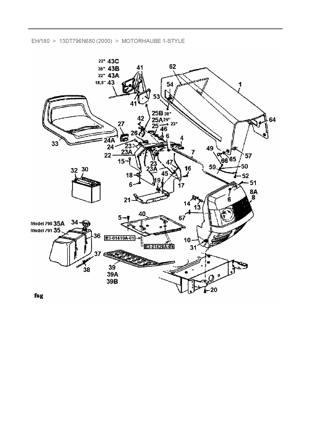 Ersatzteile für Rasentraktor White EH/180 aus der Zeichnung Motorhaube 1-Style: