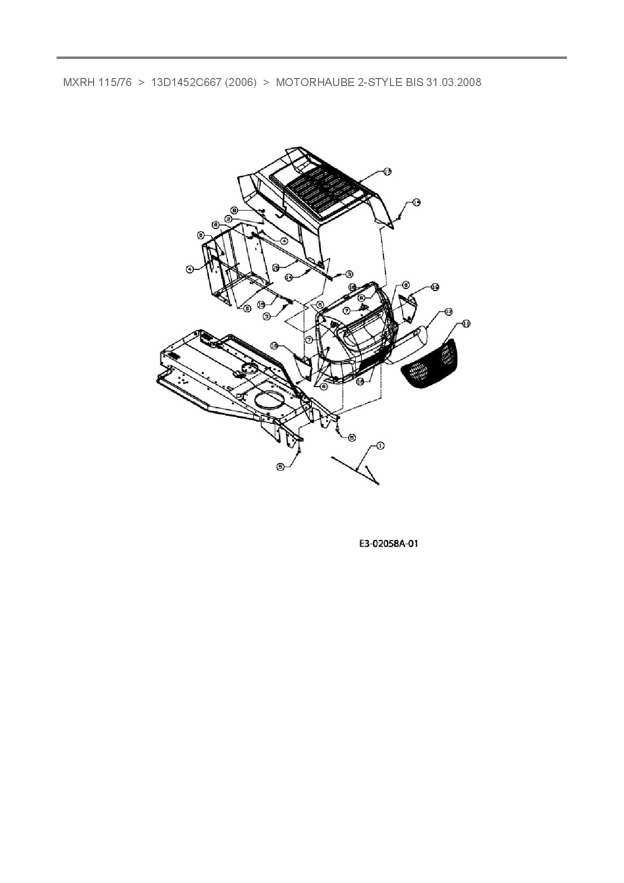 Ersatzteile für Rasentraktor Merox MXRH 115/76 aus der Zeichnung Motorhaube 2-Style bis 31.03.2008: