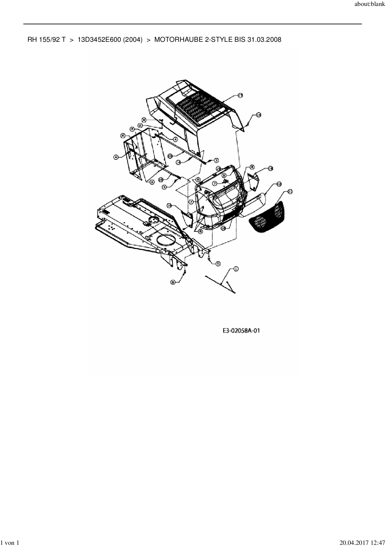 Ersatzteile für Rasentraktor MTD RH 155/92 T aus der Zeichnung Motorhaube 2-Style bis 31.03.2008: