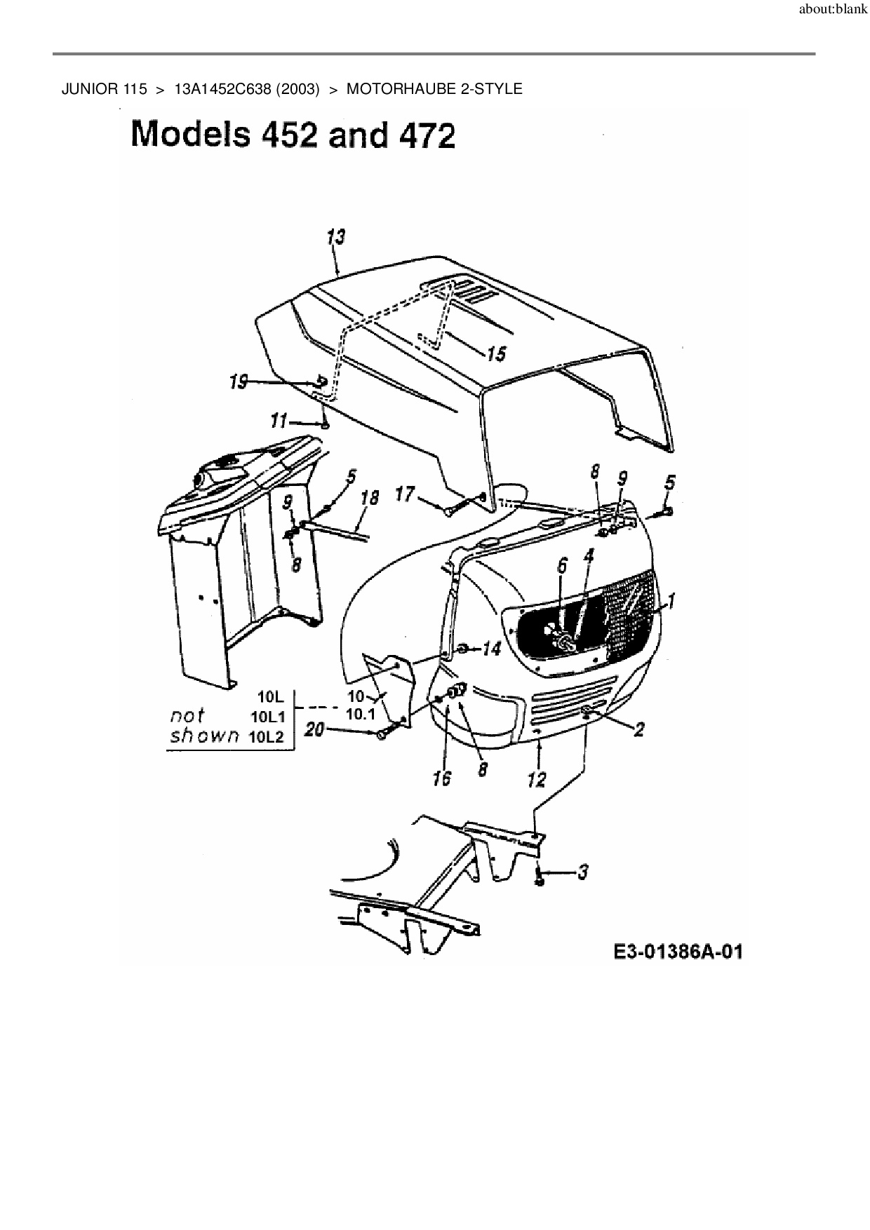 Ersatzteile für Rasentraktor Junior Junior 115 aus der Zeichnung Motorhaube 2-Style: