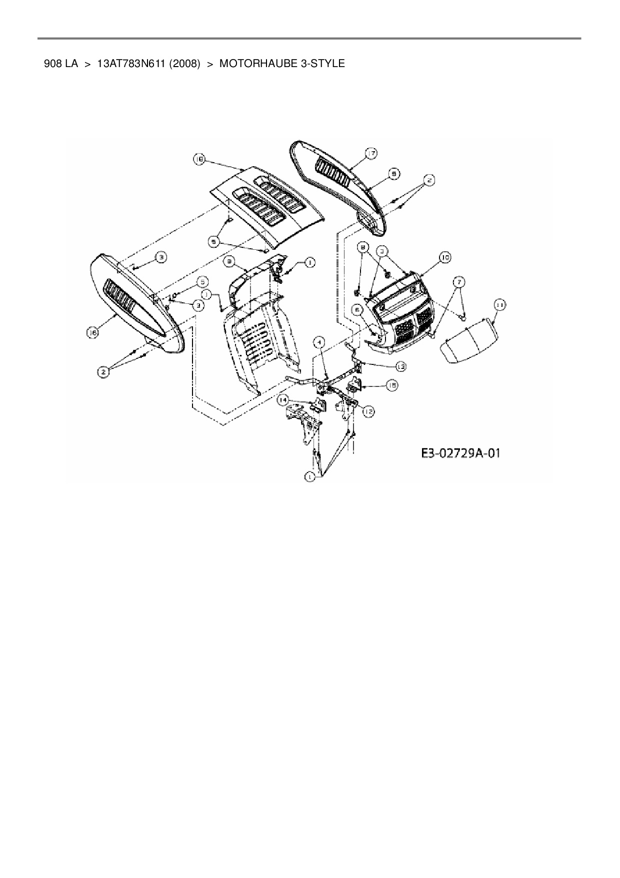 Download Ersatzteil-Zeichnung Lawnflite 908 LA Zeichnung Motorhaube 3-Style (PDF-Format)