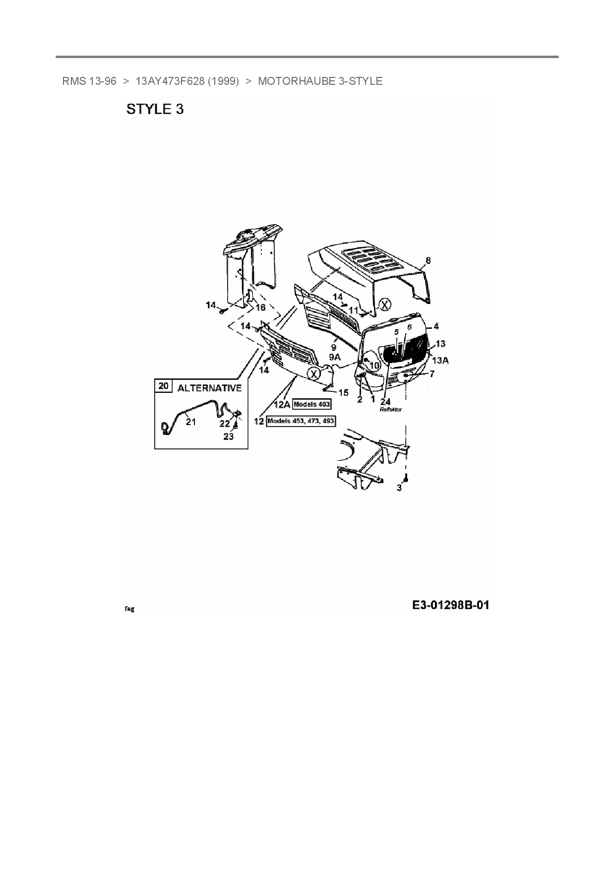 Ersatzteile für Rasentraktor Raiffeisen RMS 13-96 aus der Zeichnung Motorhaube 3-Style: