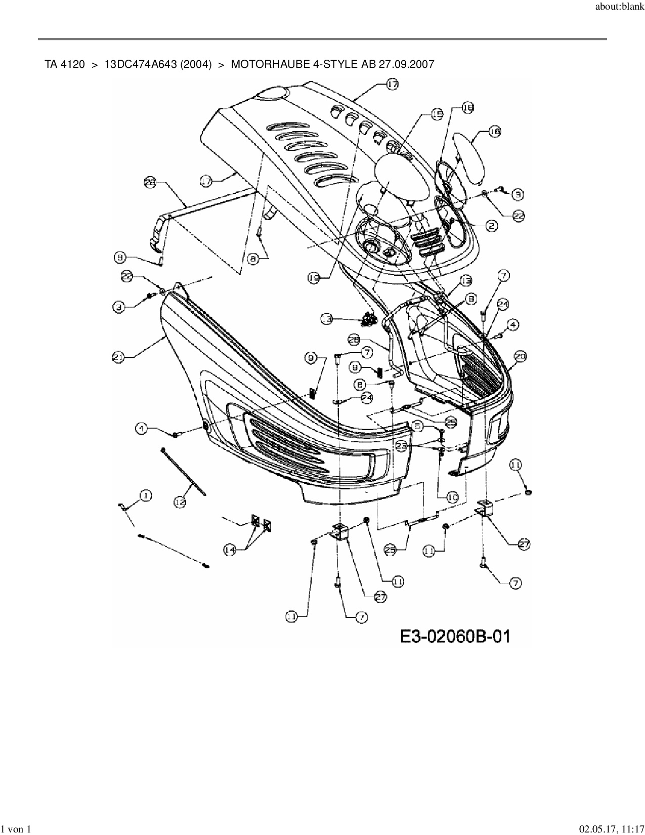 Ersatzteile für Rasentraktor Yard-Man TA 4120 aus der Zeichnung Motorhaube 4-Style ab 27.09.2007: