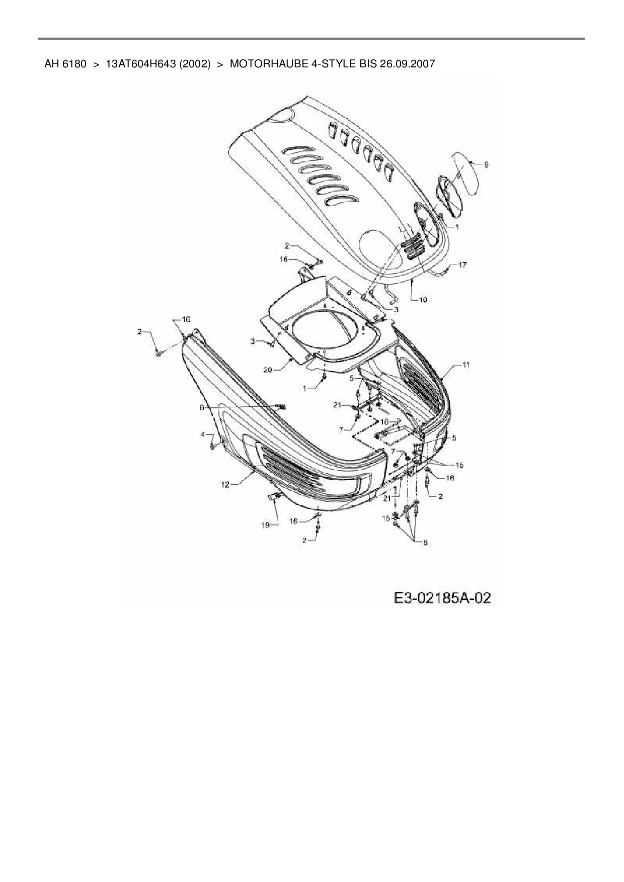 Ersatzteile für Rasentraktor Yard-Man AH 6180 aus der Zeichnung Motorhaube 4-Style bis 26.09.2007: