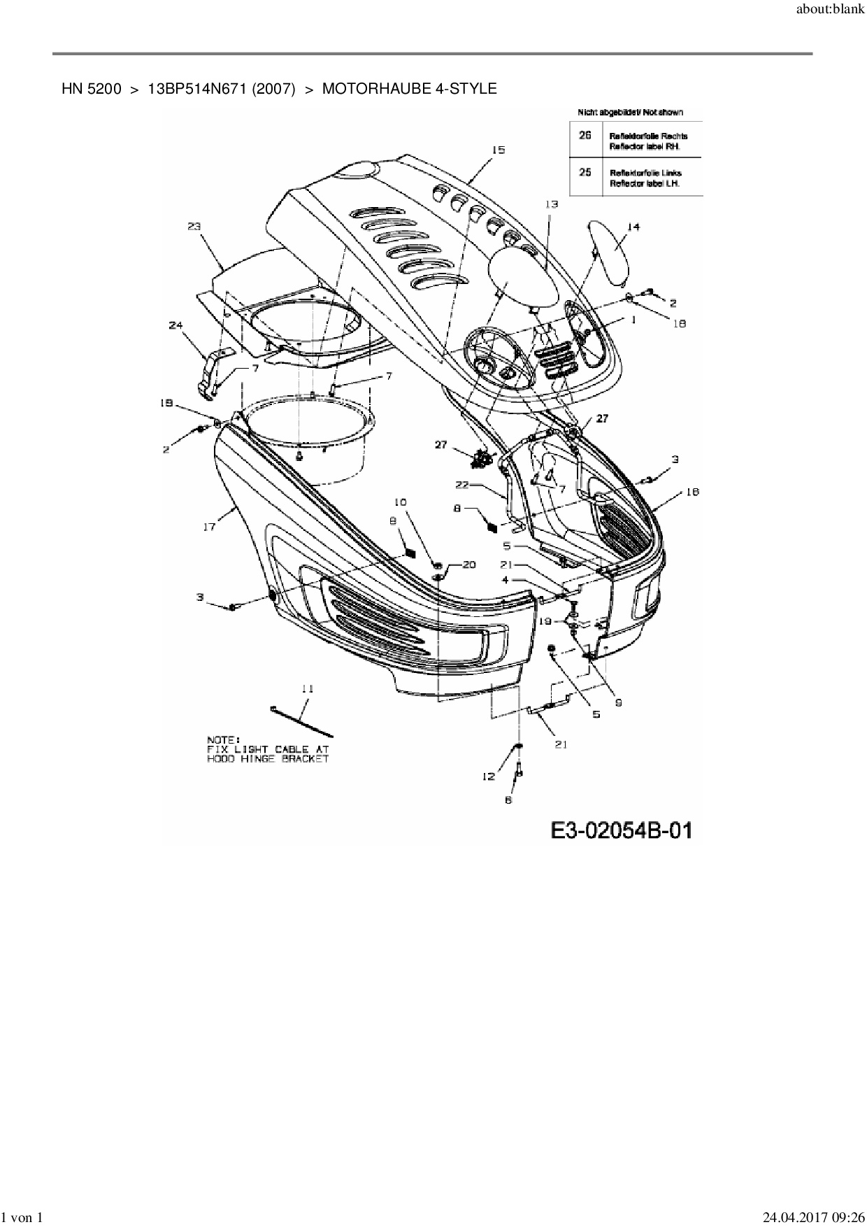 Ersatzteile für Rasentraktor Yard-Man HN 5200 aus der Zeichnung Motorhaube 4-Style: