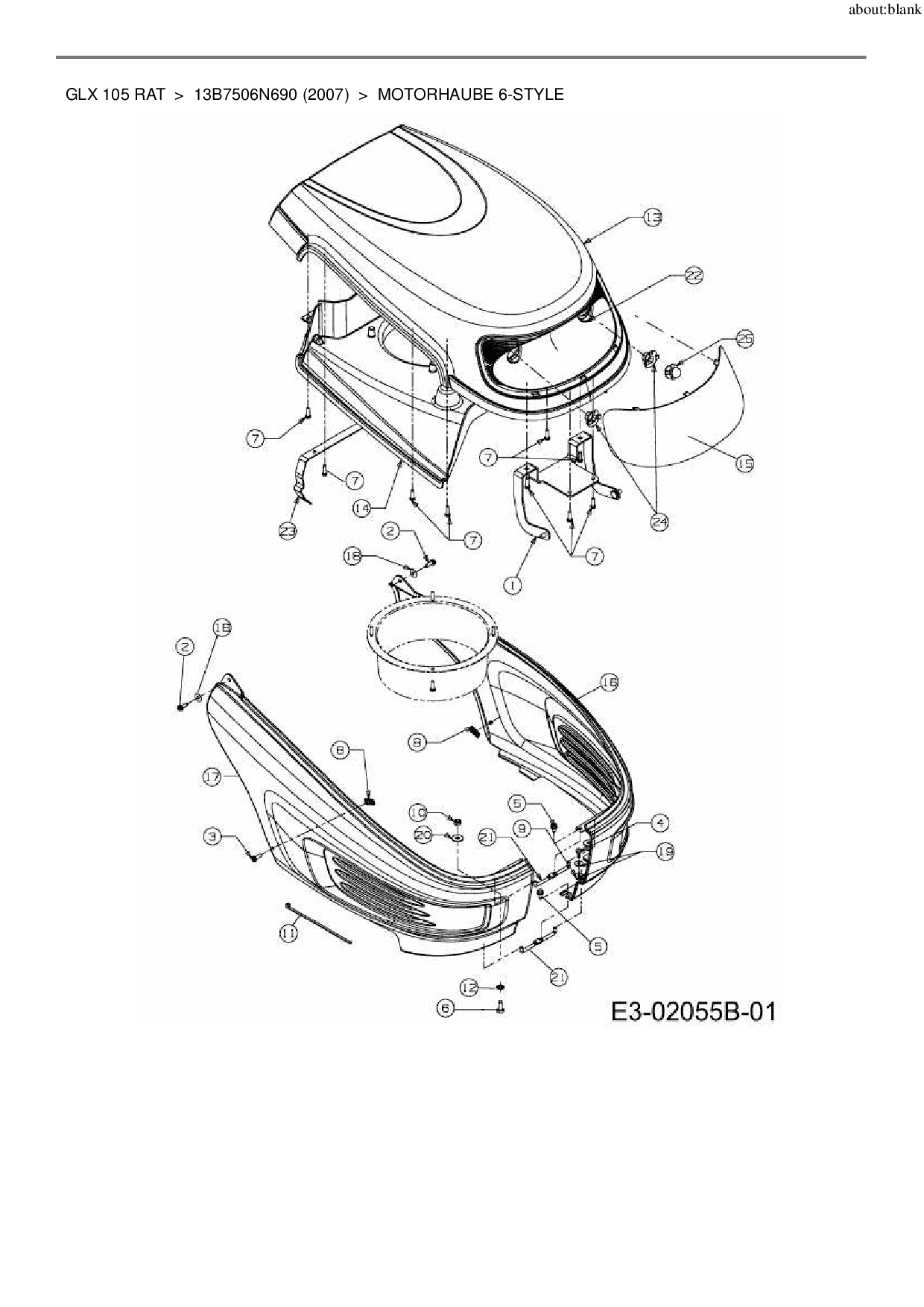 Ersatzteile für Rasentraktor Gutbrod GLX 105 RAT aus der Zeichnung Motorhaube 6-Style:
