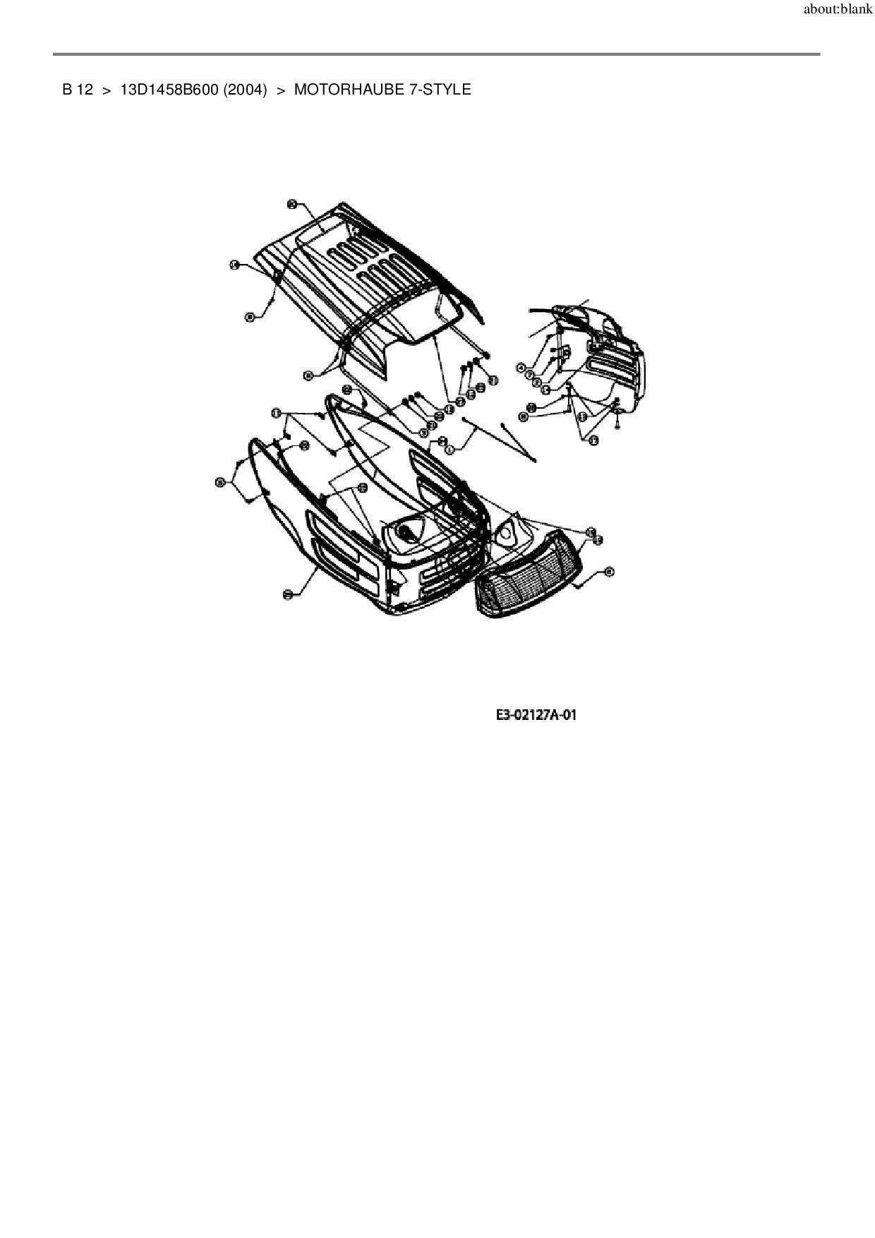 Ersatzteile für Rasentraktor MTD B 12 aus der Zeichnung Motorhaube 7-Style:
