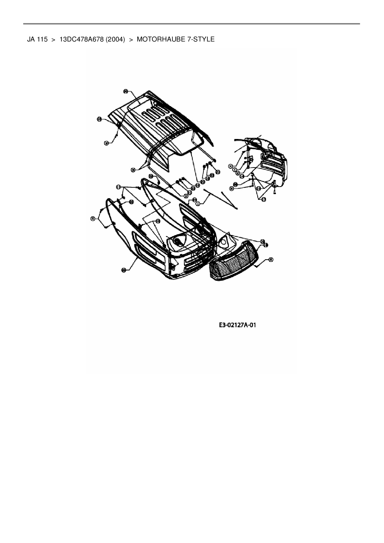 Ersatzteile für Rasentraktor MTD JA 115 aus der Zeichnung Motorhaube 7-Style: