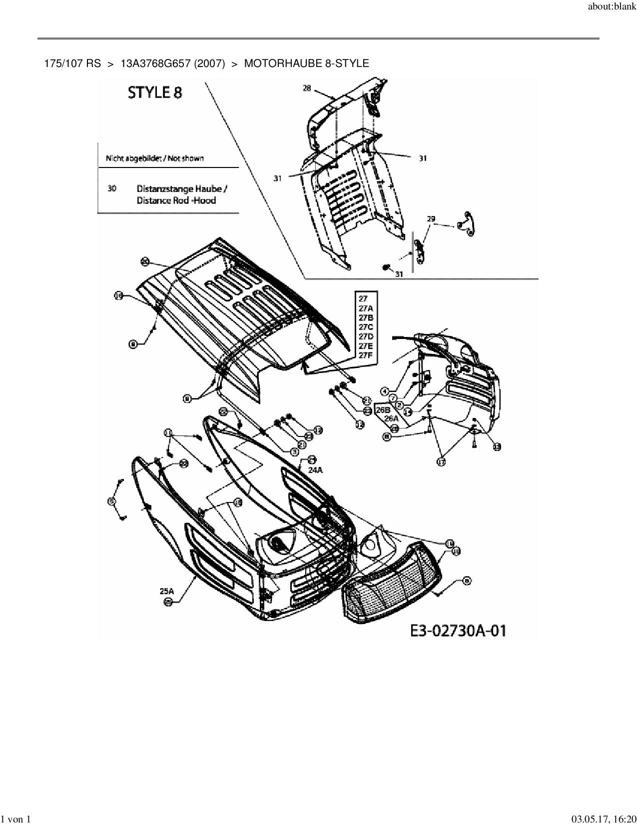 Ersatzteile für Rasentraktor Mastercut 175/107 RS aus der Zeichnung Motorhaube 8-Style: