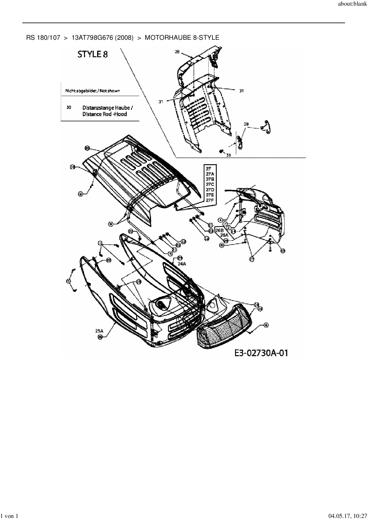 Ersatzteile für Rasentraktor MTD RS 180/107 aus der Zeichnung Motorhaube 8-Style: