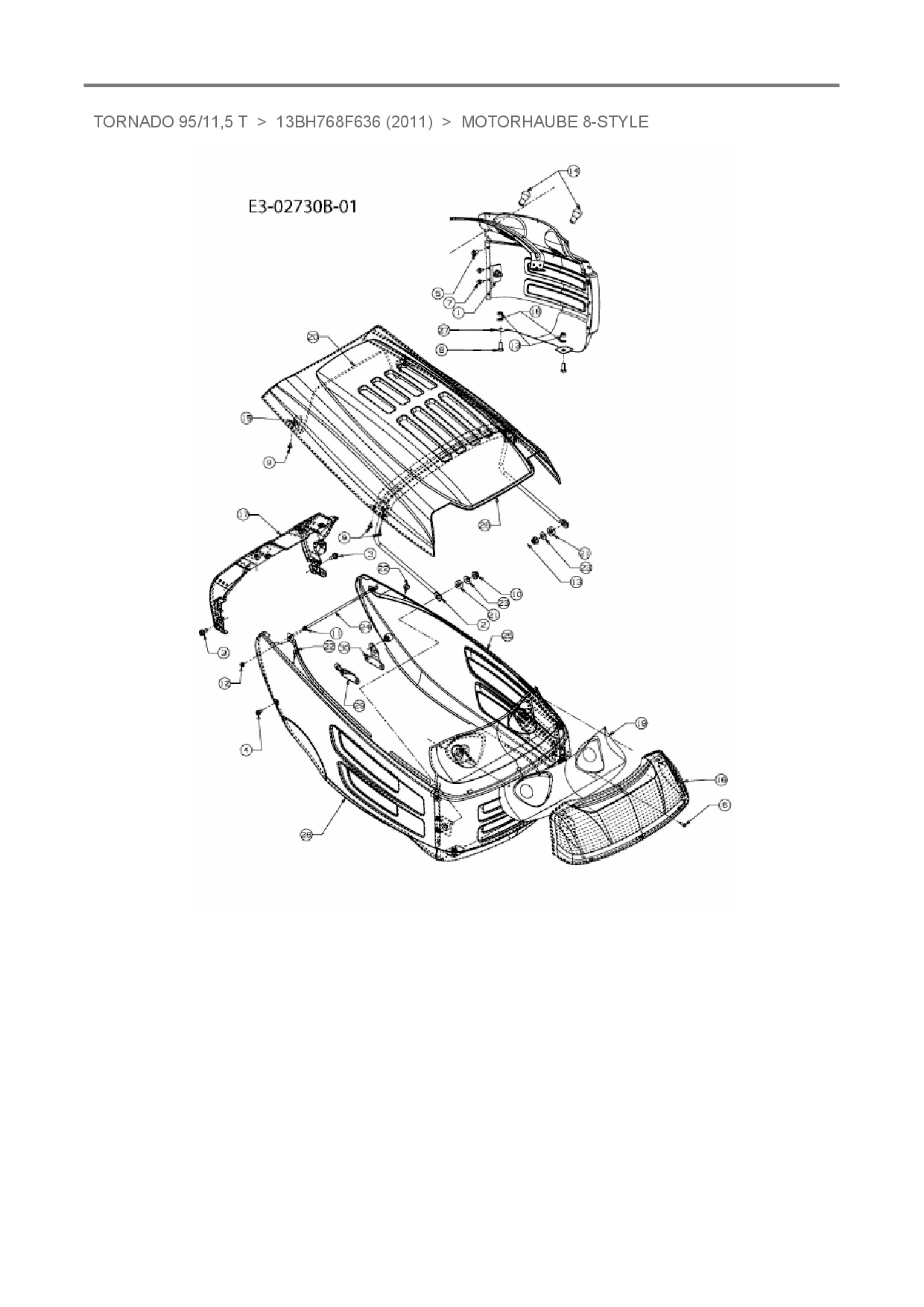 Ersatzteile für Rasentraktor Oleo-Mac Tornado 95/11,5 T aus der Zeichnung Motorhaube 8-Style:
