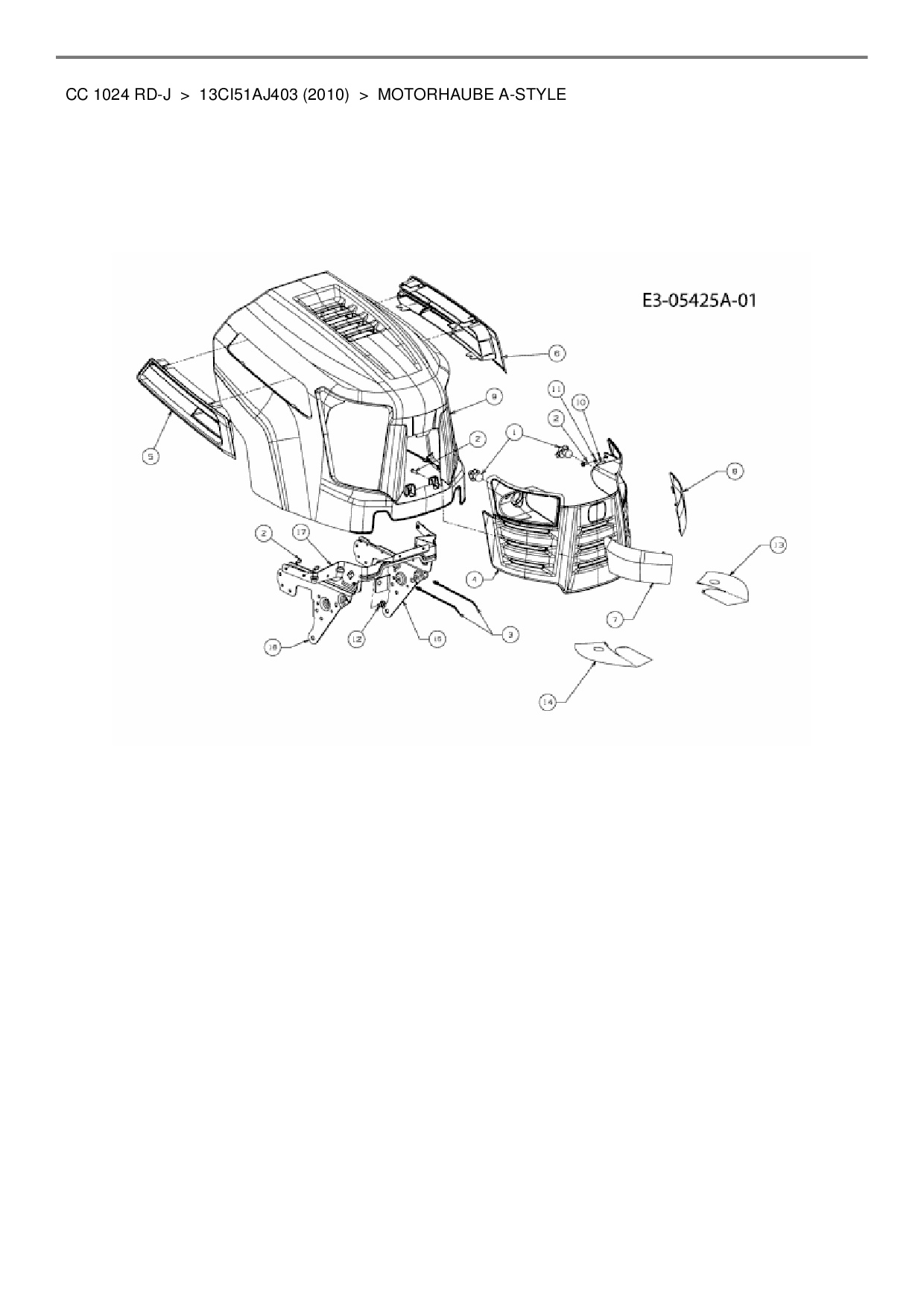 Ersatzteile für Rasentraktor Cub Cadet CC 1024 RD-J aus der Zeichnung Motorhaube A-Style: