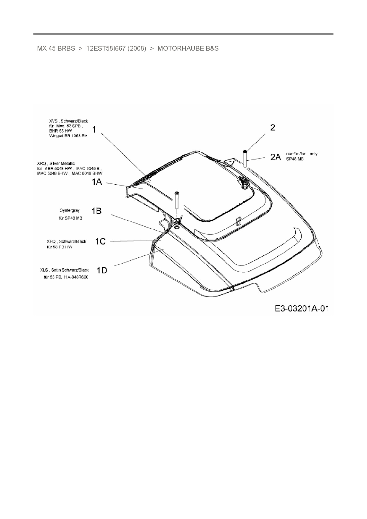 Ersatzteile für Motormäher mit Antrieb Merox MX 45 BRBS aus der Zeichnung Motorhaube B&S: