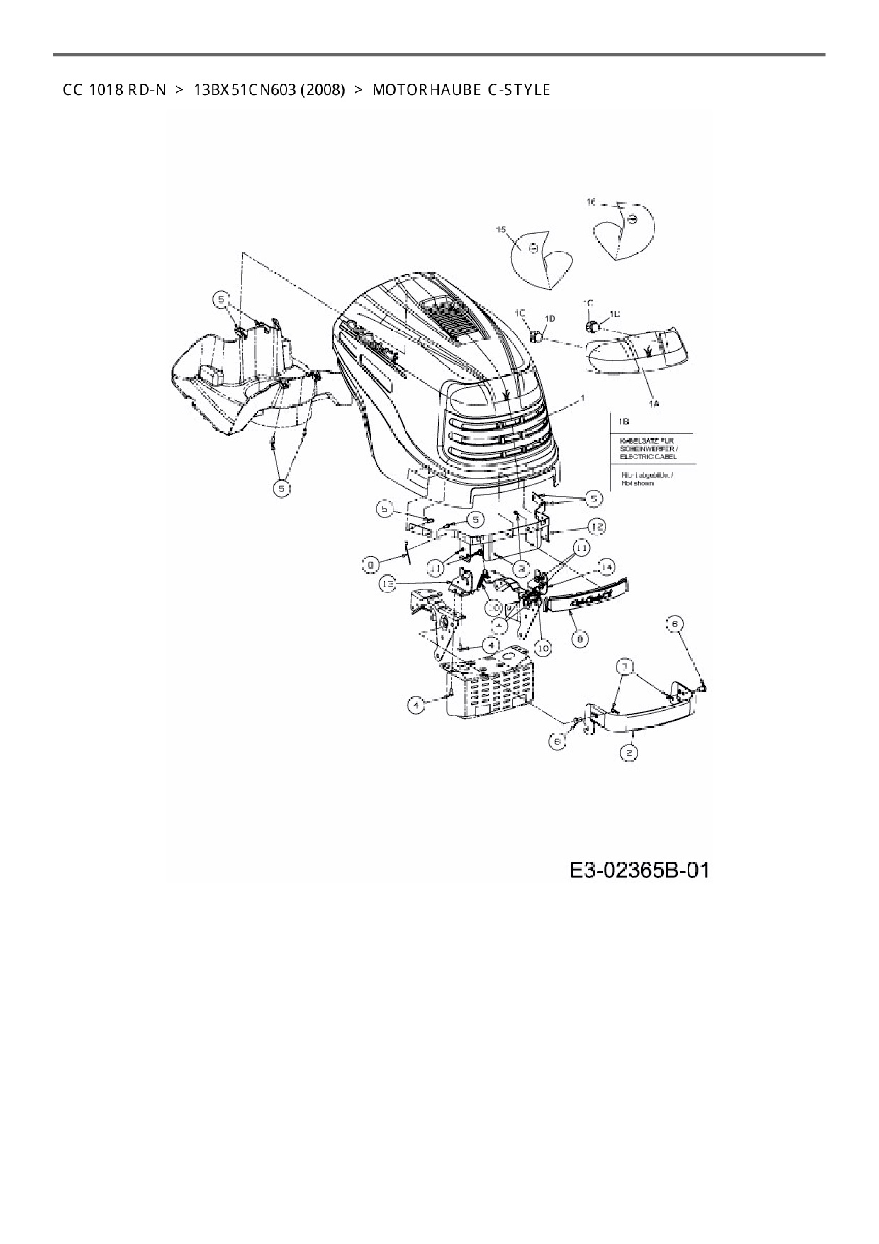 Ersatzteile für Rasentraktor Cub Cadet CC 1018 RD-N aus der Zeichnung Motorhaube C-Style: