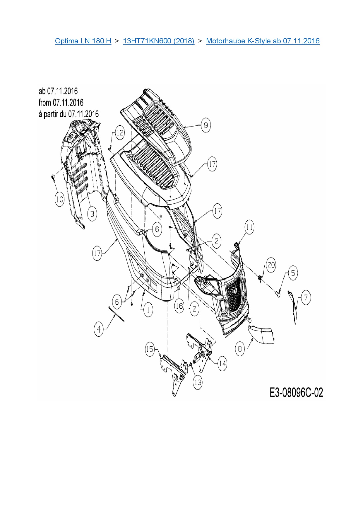 Ersatzteile für Rasentraktor MTD Optima LN 180 H aus der Zeichnung Motorhaube K-Style ab 07.11.2016: