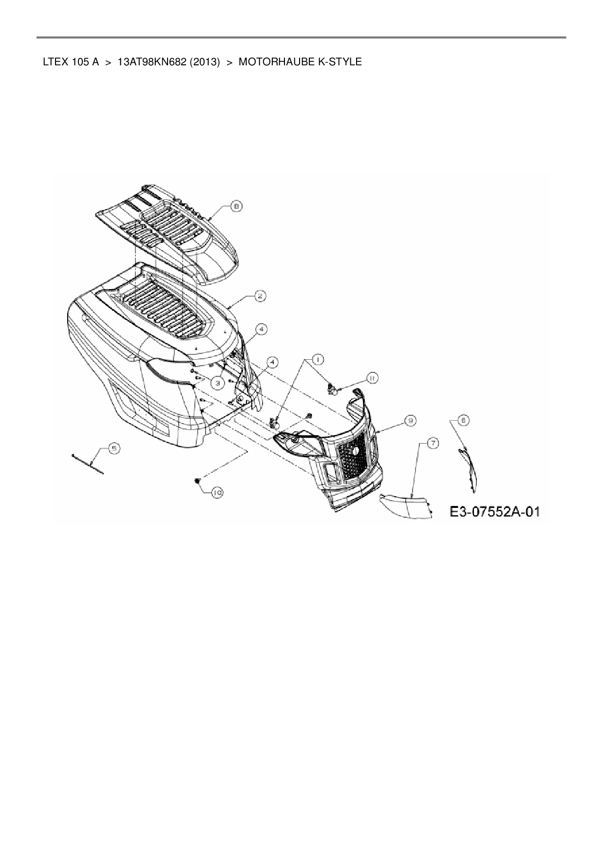 Ersatzteile für Rasentraktor MTD LTEX 105 A aus der Zeichnung Motorhaube K-Style: