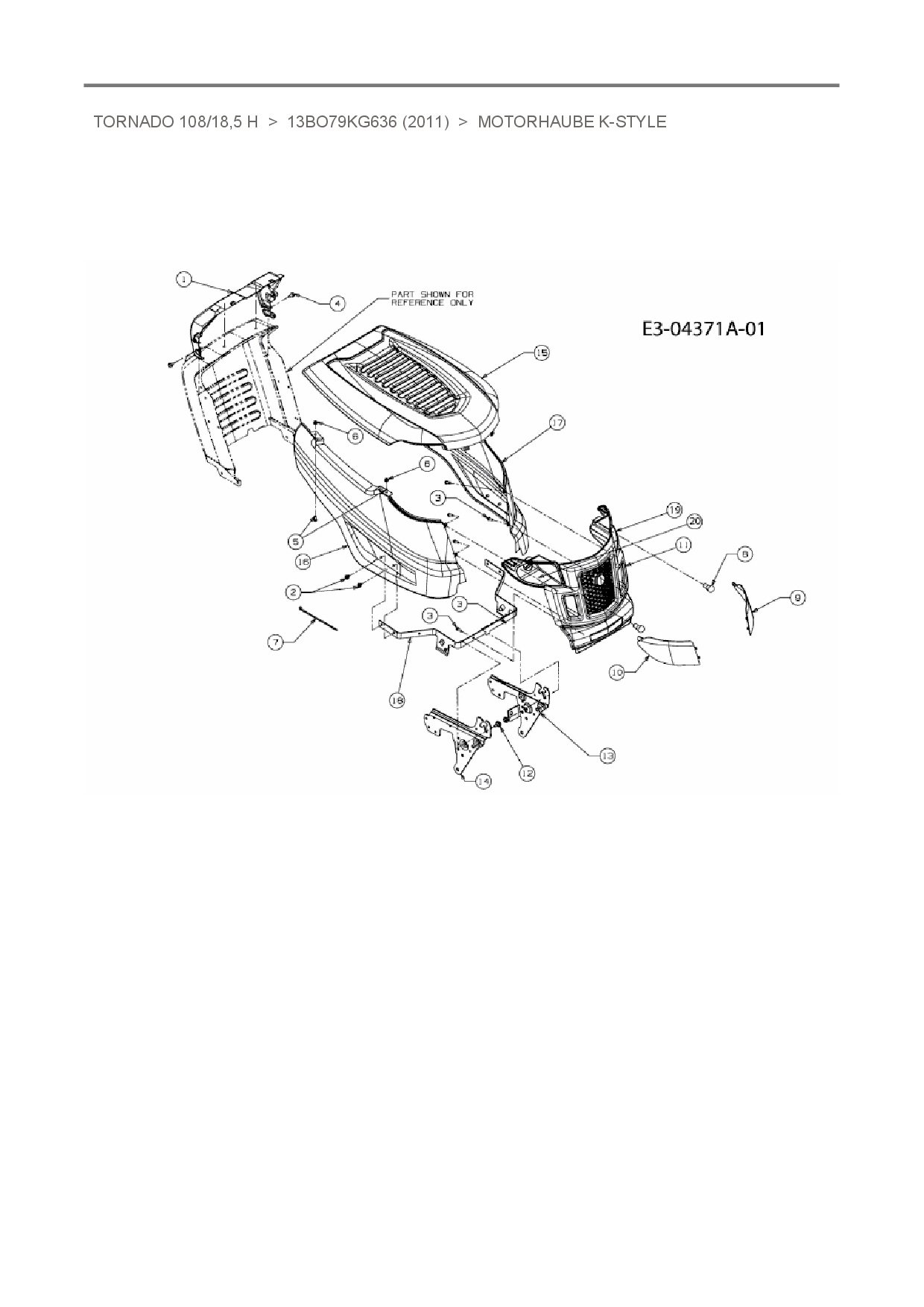 Ersatzteile für Rasentraktor Oleo-Mac Tornado 108/18,5 H aus der Zeichnung Motorhaube K-Style: