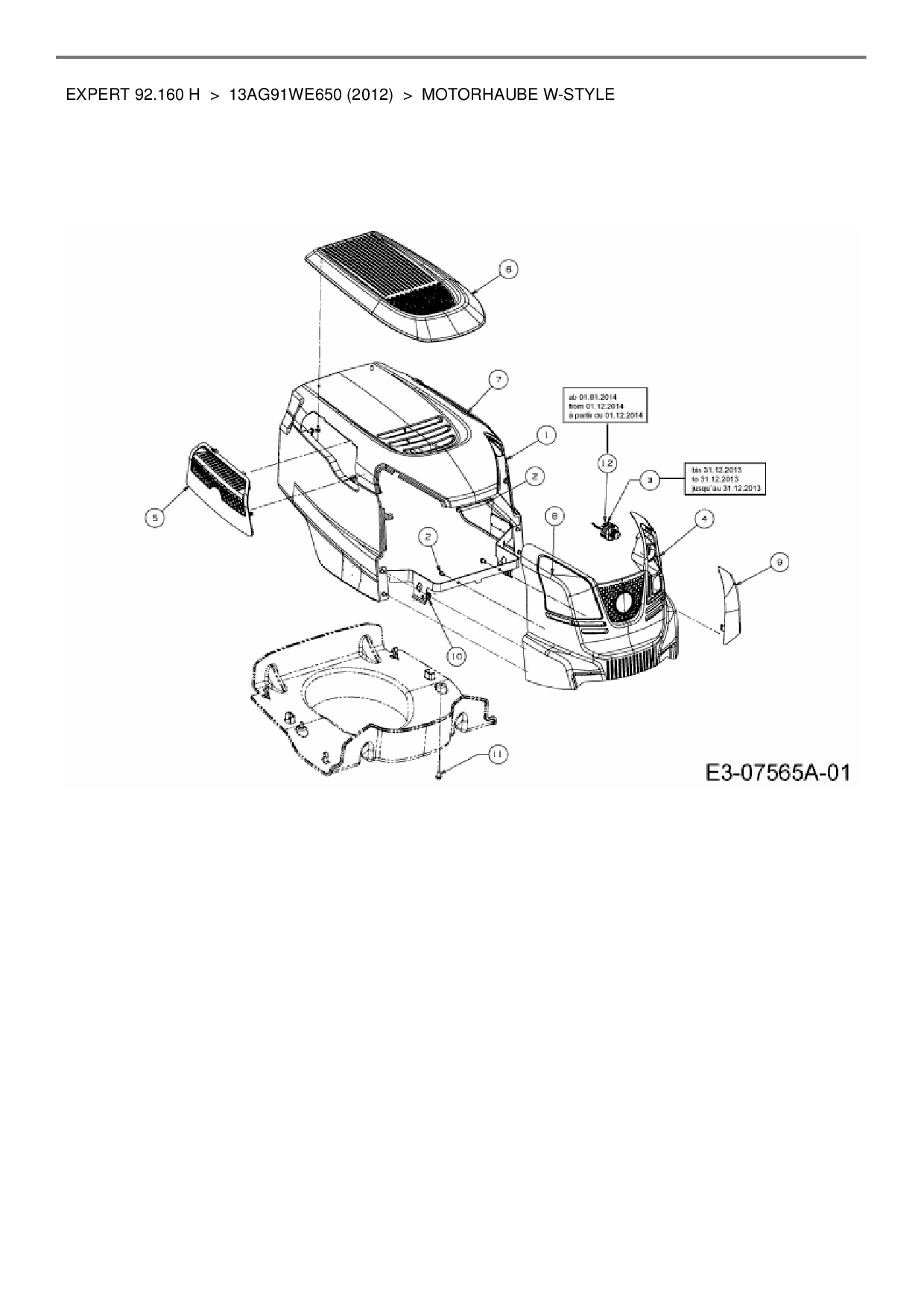 Ersatzteile für Rasentraktor Wolf-Garten Expert Expert 92.160 H aus der Zeichnung Motorhaube W-Style: