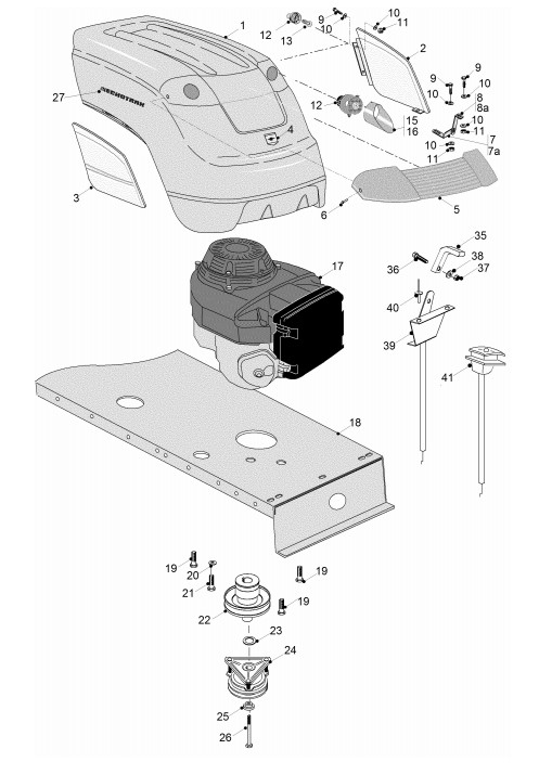 Zeichnung von ECHO-Motorgeräte Rasentraktoren PARK-Serie PARK-220HO Bj. 2004 Motorhaube, elektrom. Kupplung: