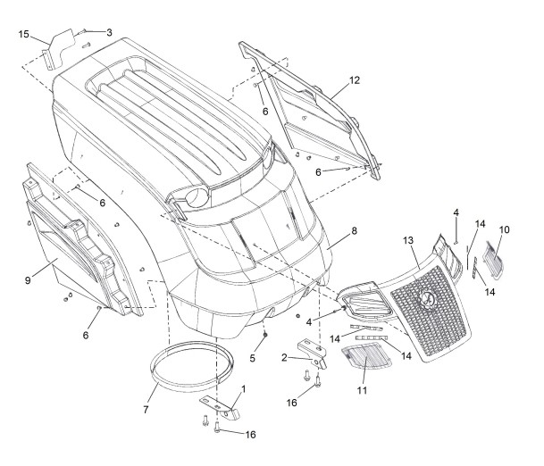 Zeichnung von ECHO-Motorgeräte Rasentraktoren A-Serie A-415B - 2016-06 A-415B ab Juni 2016 Motorhaube: